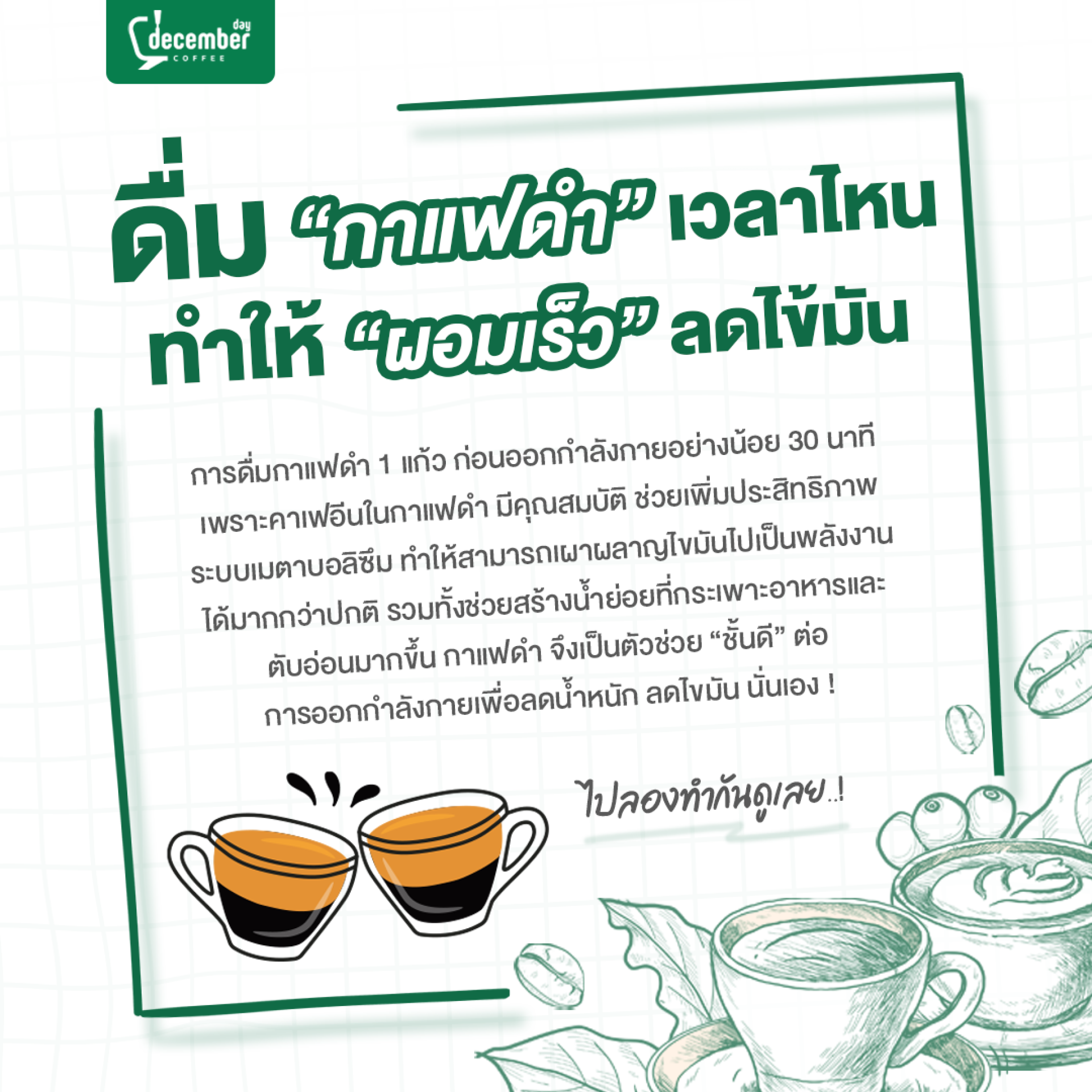 วันนี้ December Day Coffee จะมาไขความลับว่า ดื่มกาแฟดำเวลาไหนถึงจะช่วยดึงไขมันออกมาเผาผลาญได้ดีที่สุด และทำให้คุณ "ผอมเร็ว" ขึ้นอย่างเห็นผลครับ
