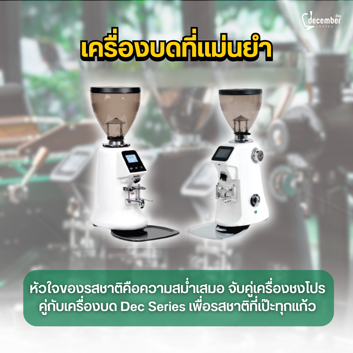 หลายคนให้ความสำคัญแค่เครื่องชงจนลืมไปว่า "เครื่องบดกาแฟ (Coffee Grinder)" คือตัวแปรสำคัญที่ทำให้กาแฟอร่อย หัวใจของรสชาติที่ดีคือความสม่ำเสมอ การจับคู่เครื่องชงโปรๆ กับเครื่องบดคุณภาพอย่าง Dec Series จะช่วยให้คุณควบคุมขนาดผงกาแฟได้อย่างแม่นยำ ทำให้กาแฟของคุณรสชาติเป๊ะทุกแก้ว ลูกค้าติดใจแน่นอน