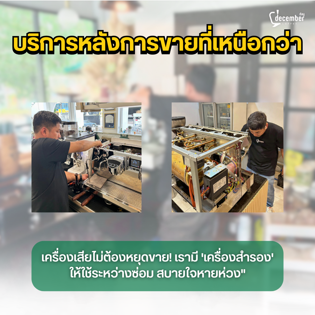 มีเครื่องสำรองระหว่างซ่อม: ปัญหาเครื่องเสียคือฝันร้ายของร้านกาแฟ แต่ที่นี่เรามีบริการ "เครื่องสำรองให้ใช้ระหว่างซ่อม" หมดปัญหาเครื่องเสียแล้วต้องหยุดขาย สบายใจหายห่วง รายได้ไม่สะดุด