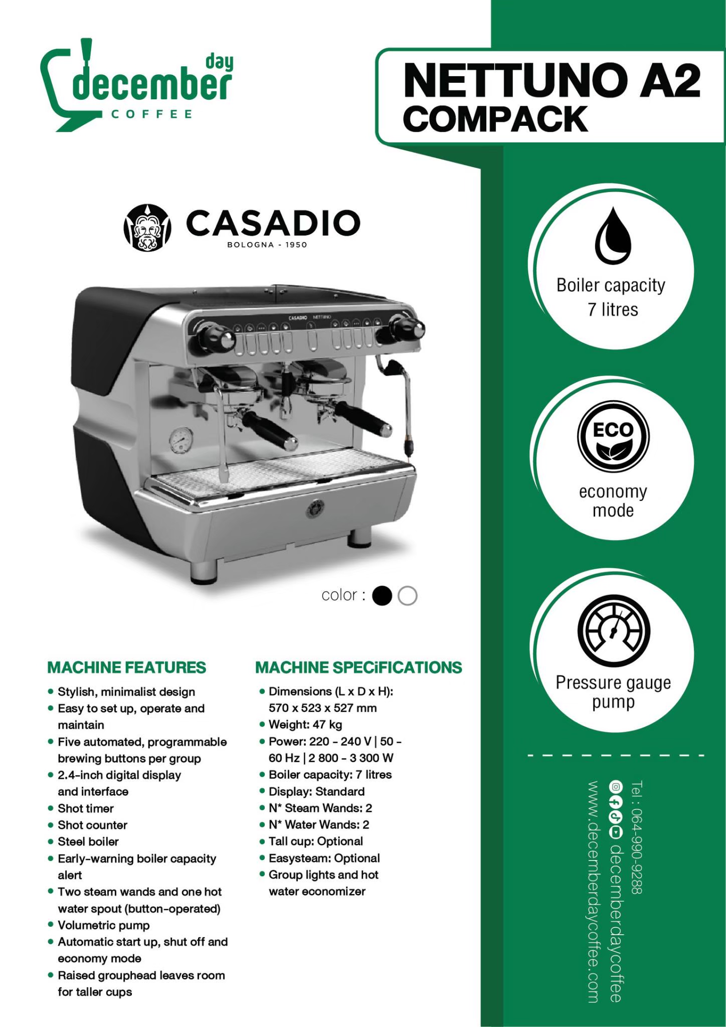 ทางเลือกที่ชาญฉลาดสำหรับร้านกาแฟที่มีพื้นที่จำกัด! พบกับ Casadio Nettuno A2 COMPACK เครื่องชงกาแฟ 2 หัวชงดีไซน์กะทัดรัด (Compact Size) รุ่นล่าสุดจากอิตาลี ที่ถูกออกแบบมาเพื่อบาริสต้าที่ต้องการสมรรถนะระดับสูงในบอดี้ที่เล็กลง ประหยัดหน้ากว้างของบาร์ได้มากขึ้น แต่ยังอัดแน่นด้วยสเปกหม้อต้มขนาด 7 ลิตร รองรับการชงต่อเนื่องได้ดีเยี่ยม พร้อมหน้าจอดิจิทัลและฟังก์ชัน Eco Mode ครบครัน จับคู่กับ DEC 600 AD เครื่องบดกาแฟเฟือง 64 มม. ที่ช่วยให้งานบดรวดเร็วและแม่นยำ